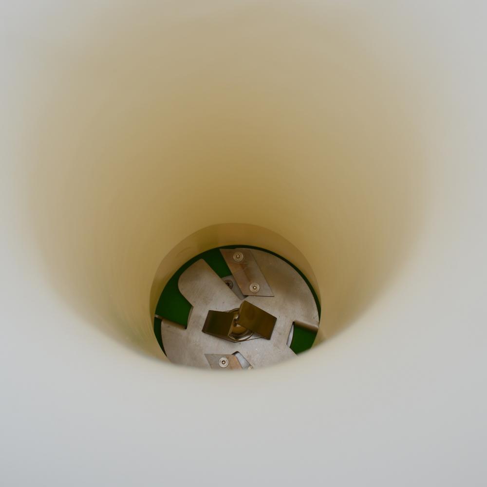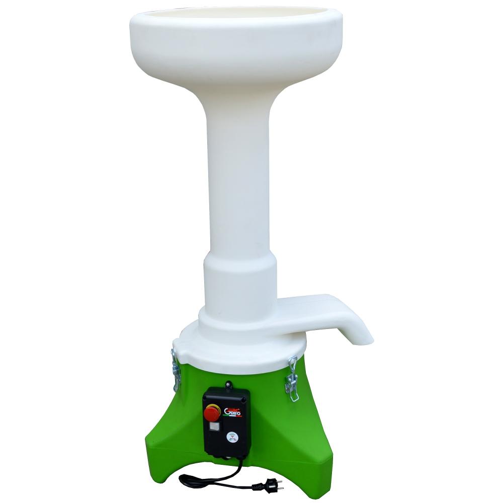 Nagyobb mennyiségű gyümölcs darálására alkalmas, saválló anyagból készült. A garatba akár a szüretelő/tároló ládából közvetlenül önthető be az egész gyümölcs, amit az inox kések körforgó mozgással péppé darálnak. A dara a kivető nyíláson át távozik a készülékből. Vészleállító gomb és garat rács, adja a biztonságot