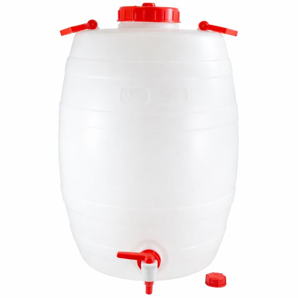 A hordó alsó részén található 3/4 colos menetes kiállásra egyszerűen felszerelhető a csomagban mellékelt félfordítós piros műanyag csap, amely lehetővé teszi a gyors és csepegésmentes adagolást. Amennyiben nem használja a csapot, a zárókupakkal hermetikusan lezárható. A menetes tető és a strapabíró szállítófülek kényelmessé és biztonságossá teszik a használatot szállítás közben is.