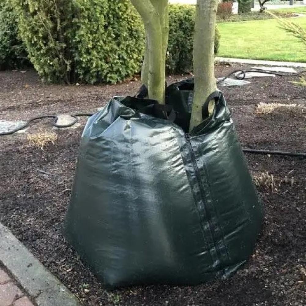 Fák és bokrok hatékony gyökéröntözésére használják. Kiváló minőségű polietilénből készült táska. A kiürüléshez szükséges idő 5-9 óra. A csepegtető öntözéses módszernek köszönhetően a növények lassan szívják fel a nedvességet, és a víz a talaj mélyebb rétegeibe is eljut. Fogantyúkkal és cipzárral van felszerelve. Alkalmazza heti egyszer ( öntözés a talaj nedvességétől függően).