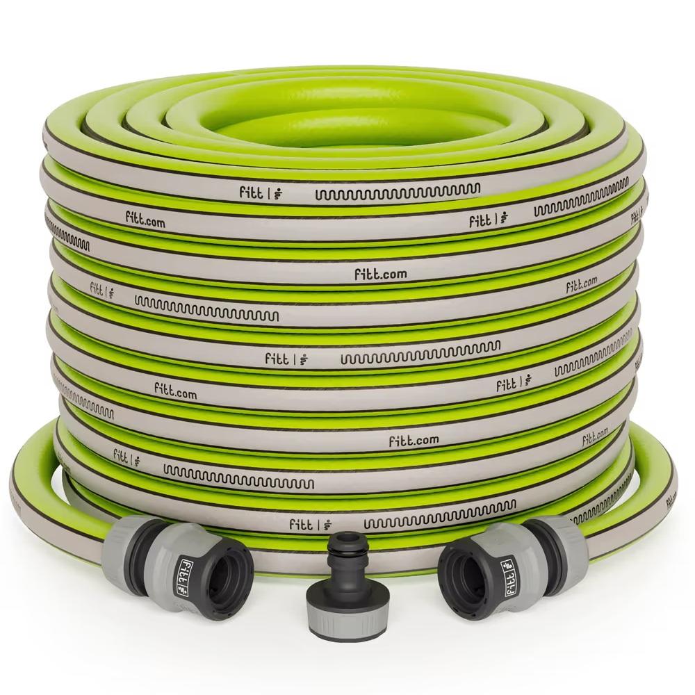 A FITT Kiuma 15 méteres locsolótömlő szett a modern kertgondozás egyik leghatékonyabb és legtartósabb megoldása, amelyet kifejezetten azoknak terveztek, akik a könnyű kezelhetőséget, a megbízható vízáramlást és a hosszú élettartamot keresik. A készlet tartalmazza a tömlőt, valamint a szabványos 1/2 colos gyorscsatlakozókat, amelyek segítségével a legtöbb kerti csapra vagy locsolóeszközre azonnal csatlakoztatható. A Kiuma egy különleges, PVC-mentes anyagkeverékből készül, amely rugalmasabb és könnyebb a hagyományos tömlőknél, miközben a dupla NTS Plus hálós erősítés gondoskodik a csavarodás- és csomómentes használatról. Ez a technológia biztosítja, hogy a tömlő ne törjön meg még akkor sem, ha akadályok között kell vezetni vagy sűrű kanyarokkal rendelkező területen használják.