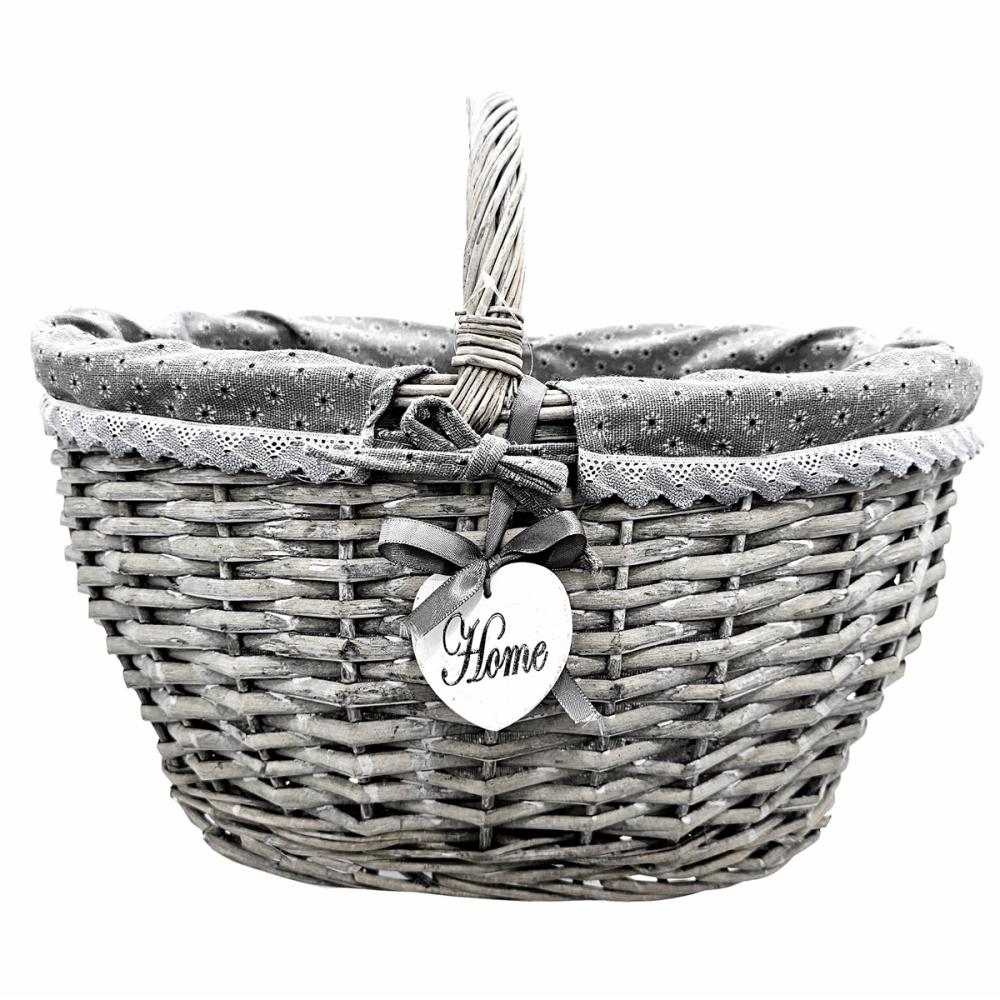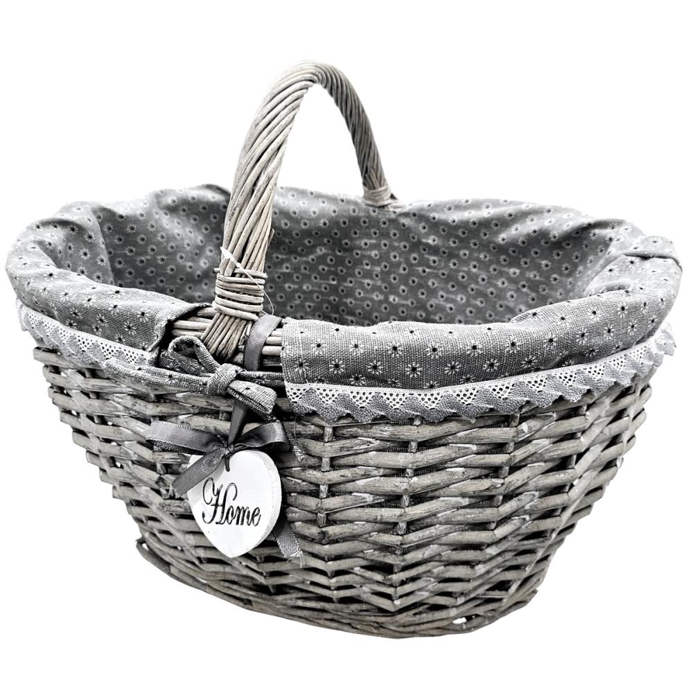 Dekoratív kézzel készült kosár csipkés béléssel. Manapság újra divatba jöttek ezek a kézzel készített fonott kosarak. Egyedi kialakítású, természetes anyagból kézzel készített kivitelezésének köszönhetően hosszú élettartamú és megbízható választás lehet mindenki számára. Ez nem egy tömeggyártott termék. Amikor bevásárolni megyünk ez a kosár nagyon hasznos lehet, mert ellentétben a bevásárláshoz használ nejlon szatyrokkal sokkal strapabíróbb és hosszú évekig megbízható társ lehet a bevásárlásaink során. Mai világban, ahol kiemelt jelentősége van a környezetvédelemnek fontos, hogy ne egy eldobható megoldást válasszunk a mindennapi bevásárlásaink során, hanem egy olyan terméket, amit hosszú ideig tudunk használni. Kivehető bélésének köszönhetően könnyen tisztán lehet tartani. A bélést akár mosógépbe is kimoshatjuk alacsonyabb hőfokú kímélő programon. Ez a belső anyag még egyedibbé teszi a kosarunkat. A kosarat használhatjuk bevásárláshoz akár a boltba akár a piacra megyünk, piknikezéshez vagy még dekorácios tárgyként is megállja a helyét.