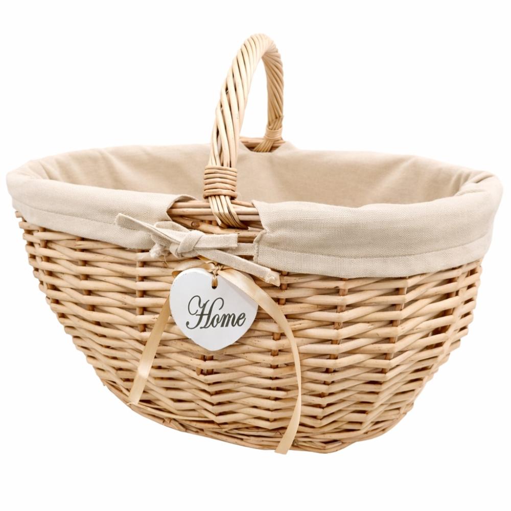 Dekoratív kézzel készült kosár csipkés béléssel. Manapság újra divatba jöttek ezek a kézzel készített fonott kosarak. Egyedi kialakítású, természetes anyagból kézzel készített kivitelezésének köszönhetően hosszú élettartamú és megbízható választás lehet mindenki számára. Ez nem egy tömeggyártott termék. Amikor bevásárolni megyünk ez a kosár nagyon hasznos lehet, mert ellentétben a bevásárláshoz használ nejlon szatyrokkal sokkal strapabíróbb és hosszú évekig megbízható társ lehet a bevásárlásaink során. Mai világban, ahol kiemelt jelentősége van a környezetvédelemnek fontos, hogy ne egy eldobható megoldást válasszunk a mindennapi bevásárlásaink során, hanem egy olyan terméket, amit hosszú ideig tudunk használni. Kivehető bélésének köszönhetően könnyen tisztán lehet tartani. A bélést akár mosógépbe is kimoshatjuk alacsonyabb hőfokú kímélő programon. Ez a belső anyag még egyedibbé teszi a kosarunkat. A kosarat használhatjuk bevásárláshoz akár a boltba akár a piacra megyünk, piknikezéshez vagy még dekorácios tárgyként is megállja a helyét.