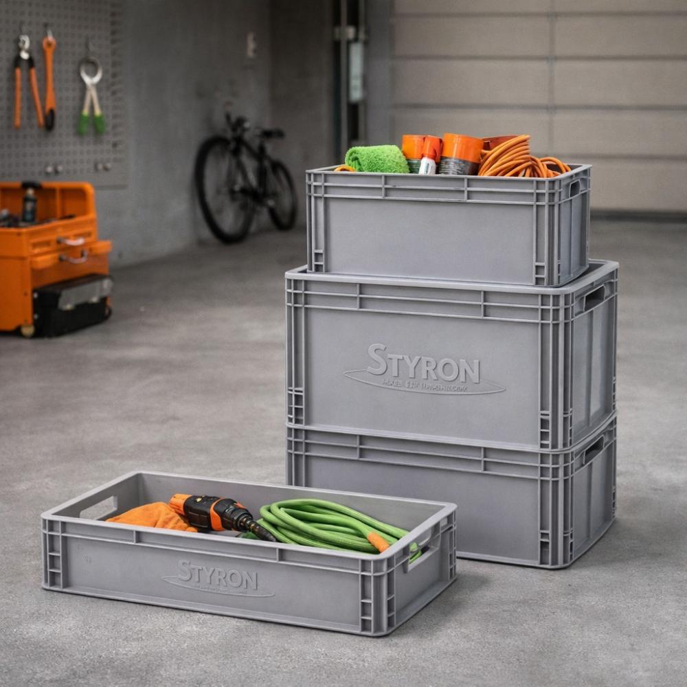 Műanyag láda Styron – Extra erős, UV-álló PP tárolórekesz - bárhova és bármire igénybe vehető | 600*400*120mm