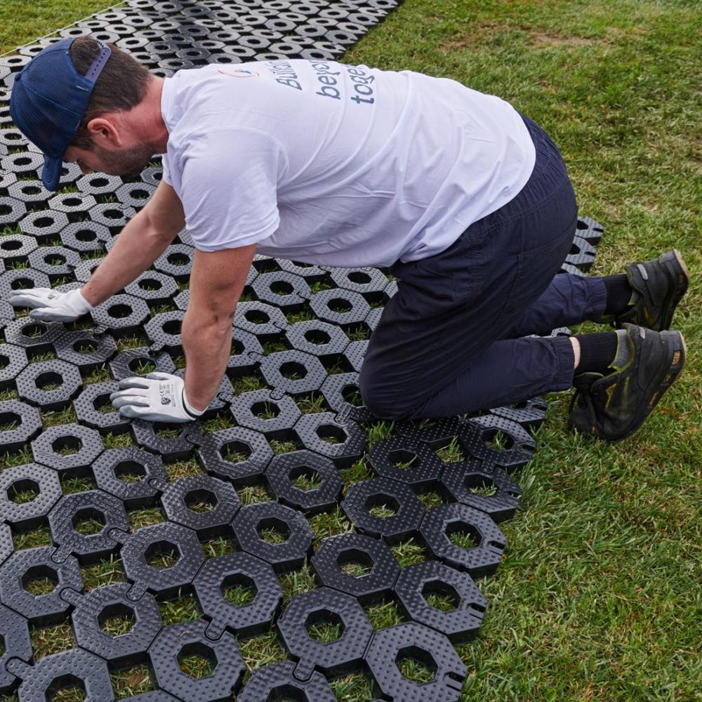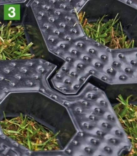 Helyezze a talajrács elemeket a meglévő gyepre vagy előkészített felületre, ügyelve a megfelelő illesztési irányra. |