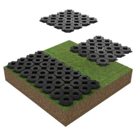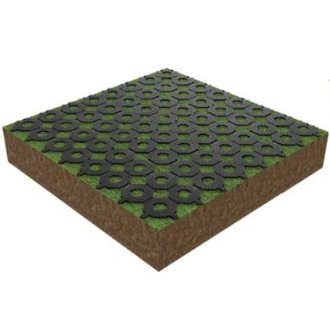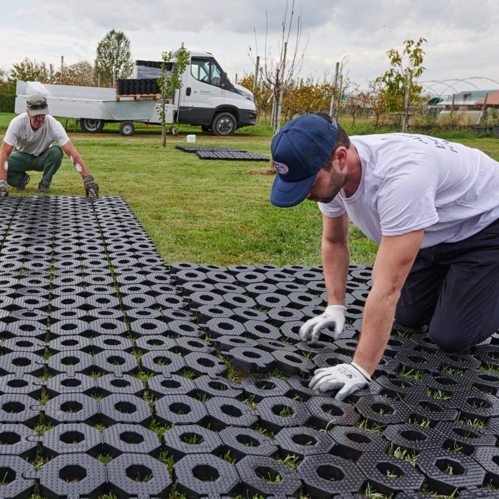 Funkcionálisan teljes értékű gyeprács: a fű képes benőni a cellák közé, így a felület természetes, zöld marad, miközben a burkolat stabil és terhelhető. Ez különösen előnyös olyan helyeken, ahol fontos a természetes megjelenés és a nagy igénybevétel egyidejű biztosítása. Biztonságos és tartós utat garantál a járművek számára, még füves felületeken és instabil terepen is.