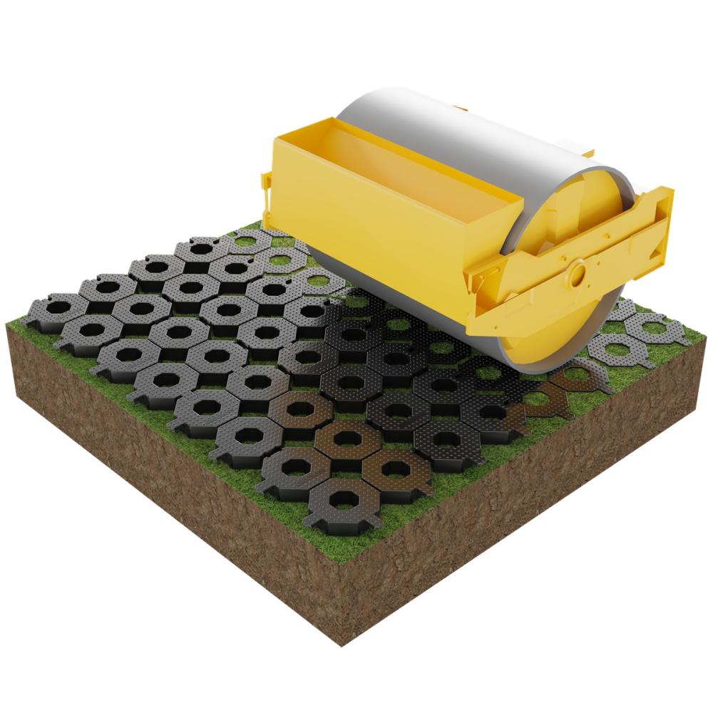 Döngöléssel vagy vibrohengerrel tömörítse, hogy a rács stabilan a talajba rögzüljön. |